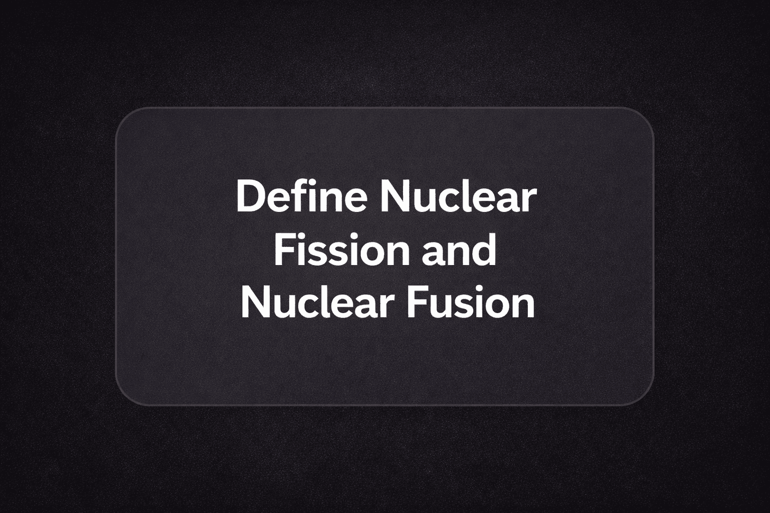 Define Nuclear Fission and Nuclear Fusion Nuclear Fission