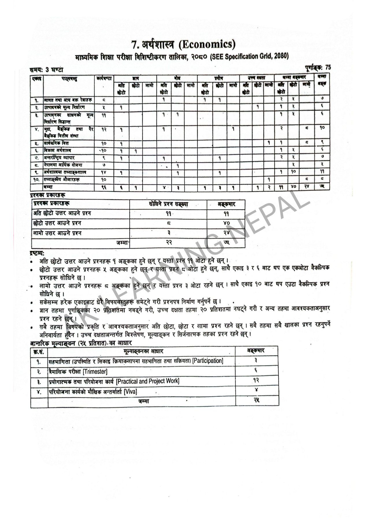 Note: Contains exam pattern, specification chart, and sample questions in both Nepali and English.
