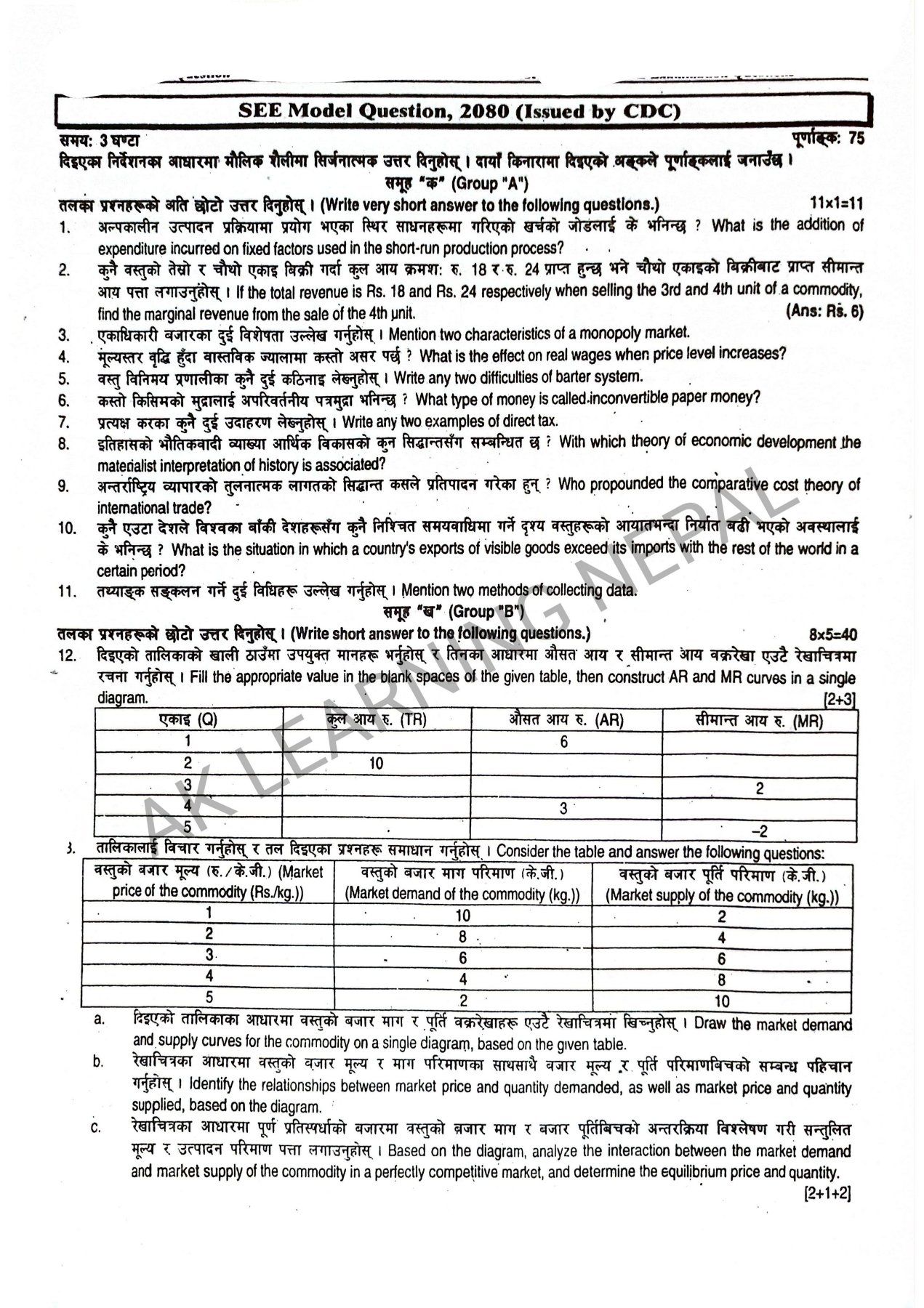 This model question paper is developed by the Curriculum Development Centre (CDC), Nepal specifically for Grade 10 Economics.