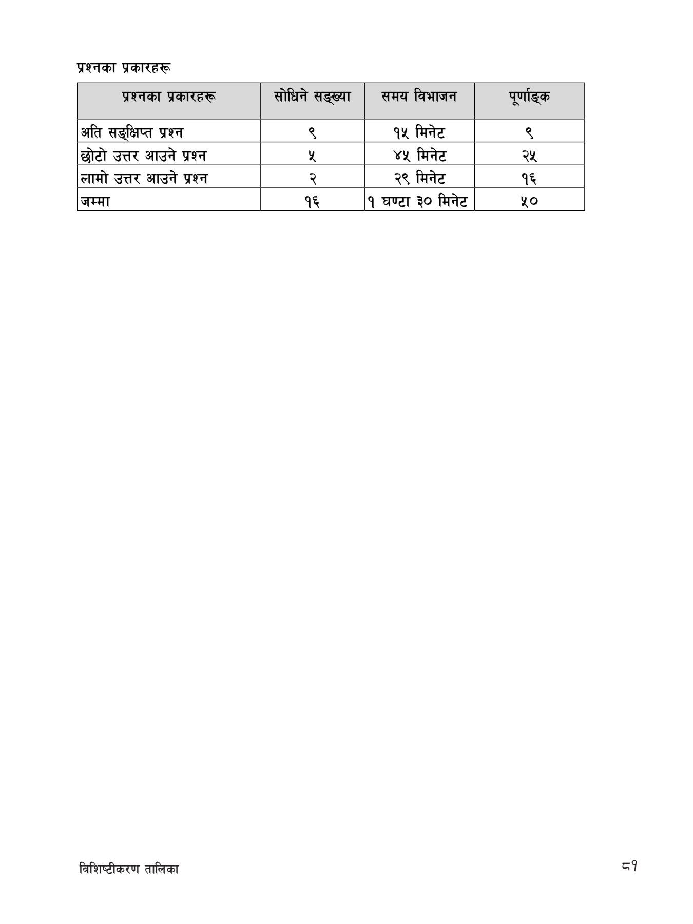 Based on CDC, Nepal Curriculum – Final Examination Pattern 2076 BS