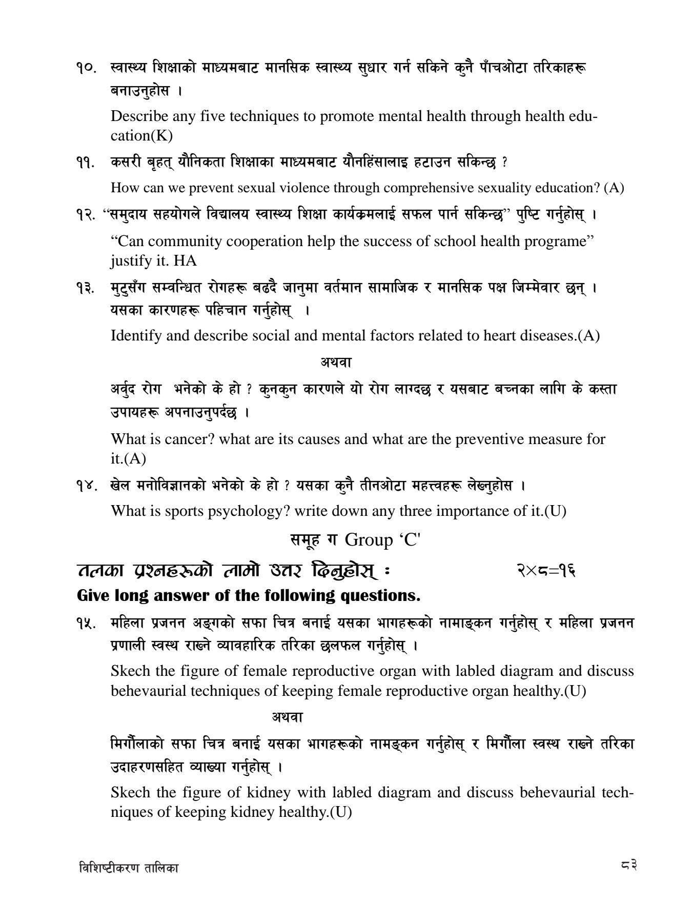 | 1. Health Management & Mental Health (स्वास्थ्य प्रबन्धन र मानसिक स्वास्थ्य) |