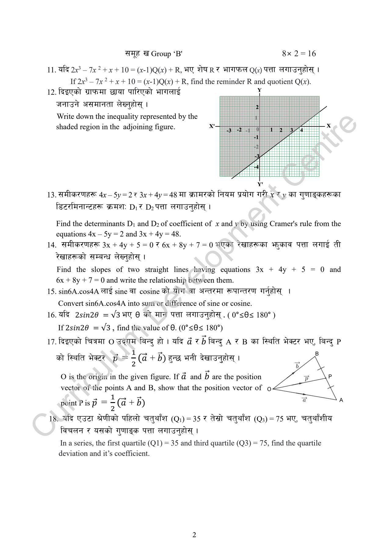 The paper includes questions in both Nepali and English languages as per national curriculum requirements. Use this as a blueprint for your exam preparation to understand the exact pattern, difficulty level, and question distribution. Class 10 CDC Optional Math Model Question Class 10 CDC Optional Math Model Question