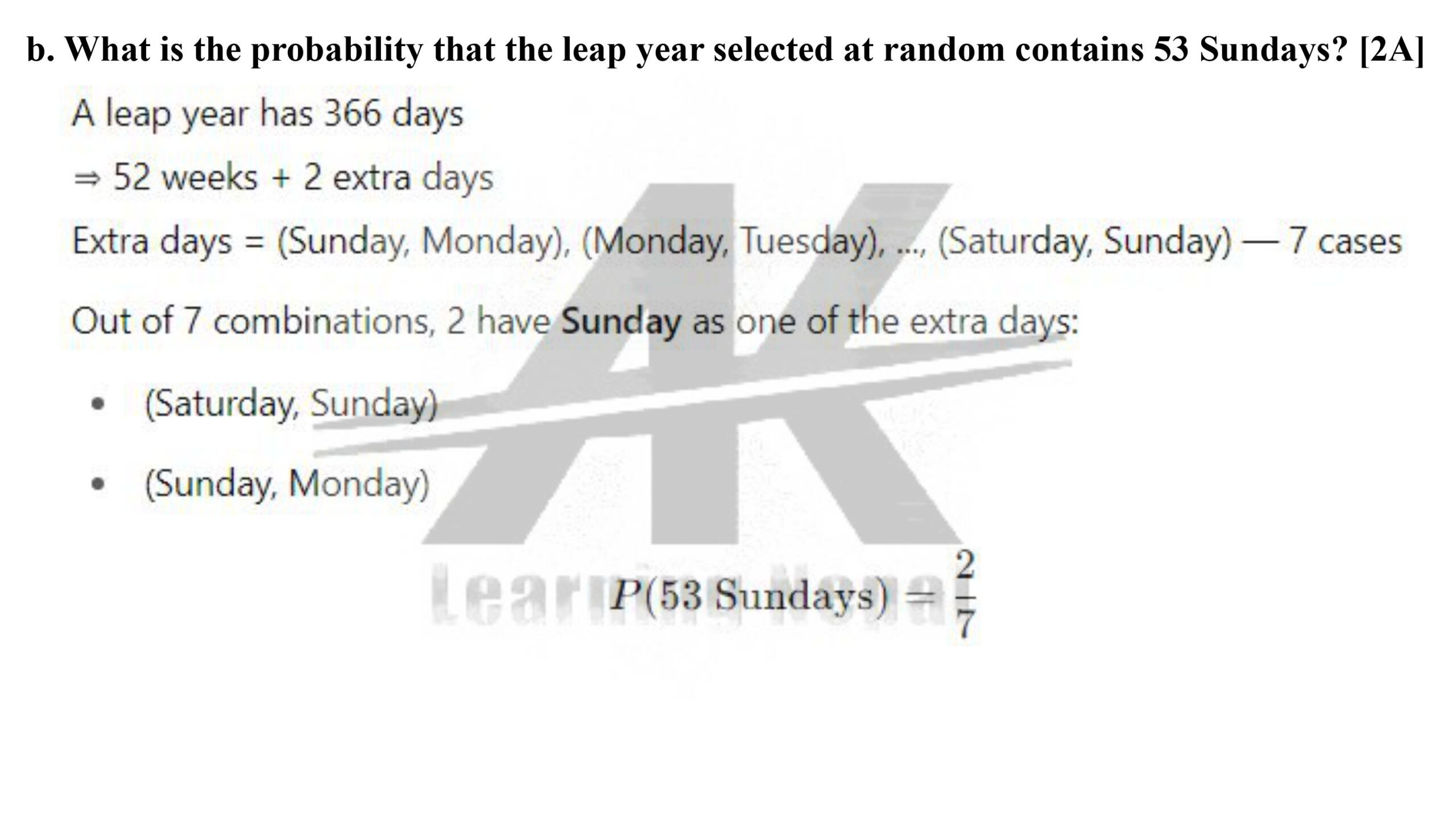 What is the probability that the leap year selected at random contains 53 Sundays?